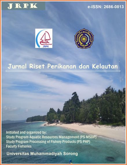 Jurnal Riset Perikanan dan Kelautan (JRPK) https://ejournal.um-sorong.ac.id/index.php/jrpk/issue/archive. Jurnal ini diterbitkan oleh LPPM Universitas Muhammadiyah Sorong Indonesia. Merupakan wadah publikasi ilmiah penelitian perikanan dan kelautan dengan jadwal penerbitan dua kali dalam satu tahun. Jurnal ini menyebarkan informasi ilmiah kepada peneliti, akademisi, praktisi dan pemerhati mengenai; Pengolahan Hasil Perikanan, Teknologi Perikanan Laut, EAFM, Budidaya Perairan, Biologi Perikanan, Pemanfaatan Sumberdaya Perikanan, Pengelolaan Sumberdaya Pesisir dan Lautan, Konservasi Perairan, Ekowisata Bahari dan Pulau-Pulau Kecil. Naskah yang dimuat dalam jurnal ini berasal dari penelitian atau ulasan akademisi dari berbagai universitas, lembaga pemerintah dan pemerhati permasalahan pengelolaan sumberdaya perikanan dan kelautan di Indonesia.e-ISSN: 2686-0813